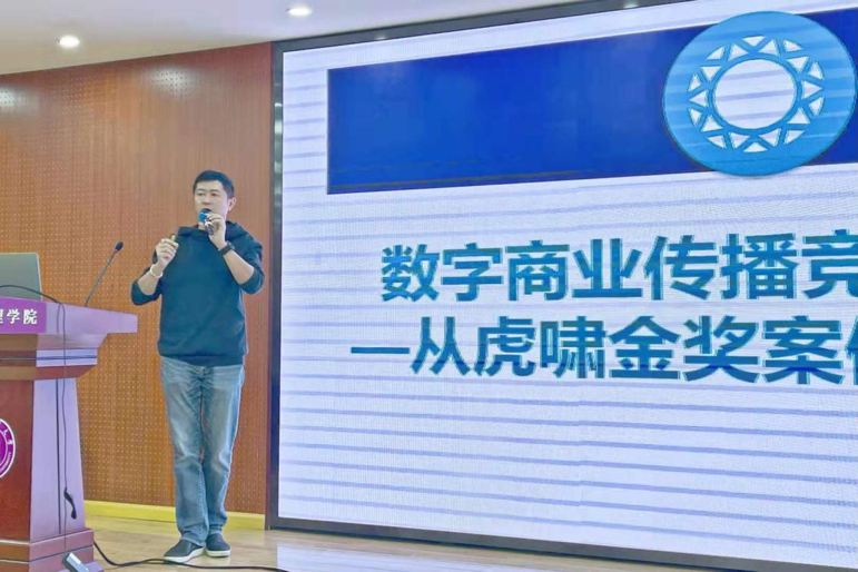 【通讯员 郭佳、胡程立】20201210日,虎啸传媒CEO、《数字营销》杂志主编袁俊先生做客狮子山讲坛,为太阳集团tyc33455广告系师生带来一场别开生面的讲座。讲座的主题为《数字商业传播竞争力解析——从虎啸金奖案例视角说起》,由广告与传播学系副主任胡程立副教授主持。