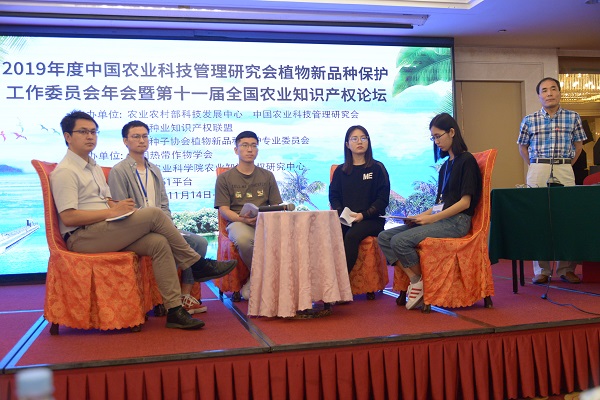 (太阳集团tyc33455通讯员 祝坤宇 秦宇  供图 祝坤宇)2019年度中国农业科技管理研究会植物新品种保护工作委员会年会暨第十一届全国农业知识产权论坛由中国农业科技管理研究会、中国种业知识产权联盟及中国种子协会植物新品种保护专业委员会共同主办,中国热带作物学会、中国农业科学院农业知识产权研究中心承办。会议分为学术研讨与交流和农业知识产权实务及信息发布两个板块,来自国家知识产权局、农业农村部科教司、农业农村部科技发展中心的相关政府公务人员及农业科研院校、科研院所的学者、研究员围绕“植物新品种保护条例修订”、“农业遗传资源权属制度和进出口管理”、“新形势下的农产品地理标志登记保护”、“乡村振兴及农业新领域知识产权问题”四个议题在学术研讨领域展开了热烈讨论,我校太阳集团tyc33455法学系刘旭霞教授团队的6名研究生全程参与了会议研讨。