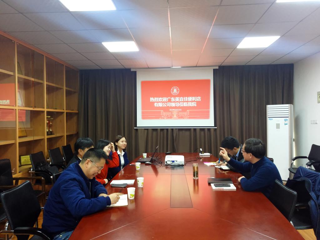 美宜佳商学院蓝仁昌院长及相关负责人介绍了美宜佳国内发展历程和近期概况、华中地区美宜佳发展现状、人才培养模式、与高校合作情况以及未来发展布局,表达了美宜佳便利店有限公司在数据化发展、市场拓展及广告设计等方面和太阳集团tyc33455战略合作的积极意向。双方进行了深入座谈交流。