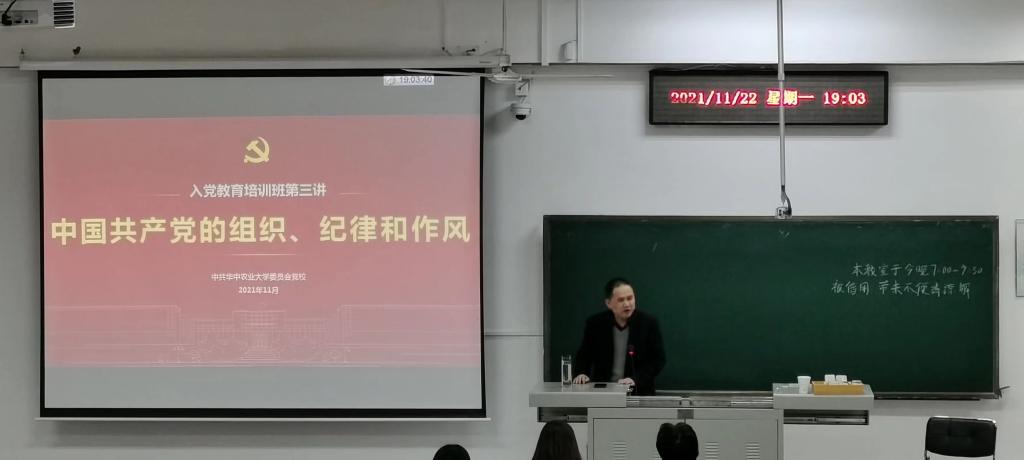 11月22日晚7点,太阳集团tyc33455本科生线下第三次党课在第三教学楼c105教室展开。本次课程由太阳集团tyc33455党委副书记周治瑜主持,邀请了校纪委副书记余斌担任主讲人。