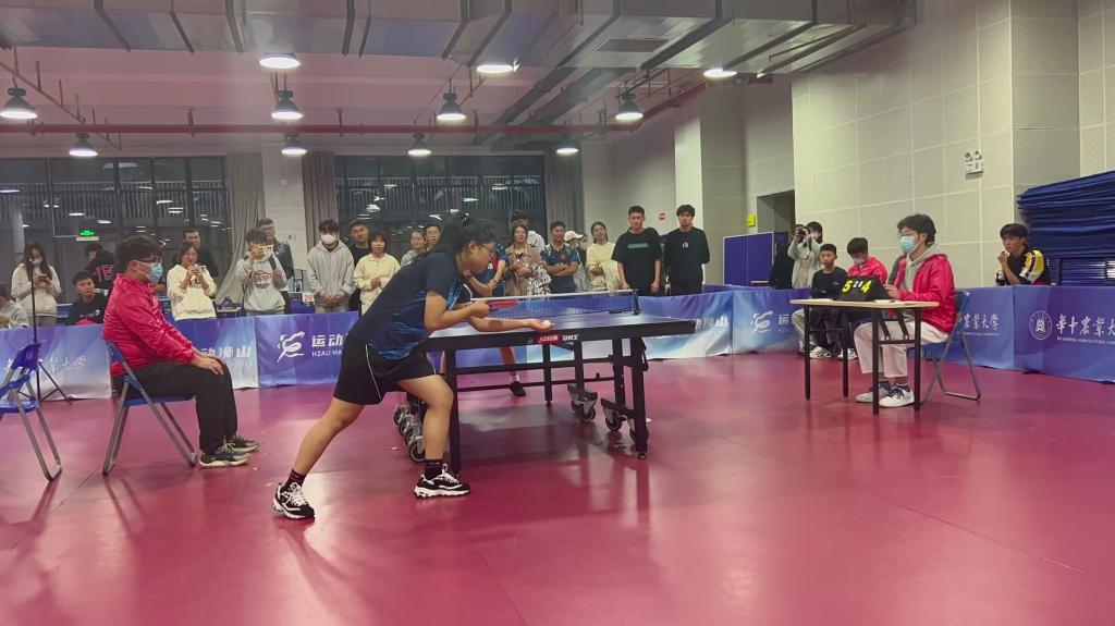 女单决赛是本次赛程的最后一环,我院濮一凡同学与外国语学院同学的比分十分焦灼,进行到最后一局时仅有一分之差,濮一凡同学攻守结合,最终获得了亚军的成绩。