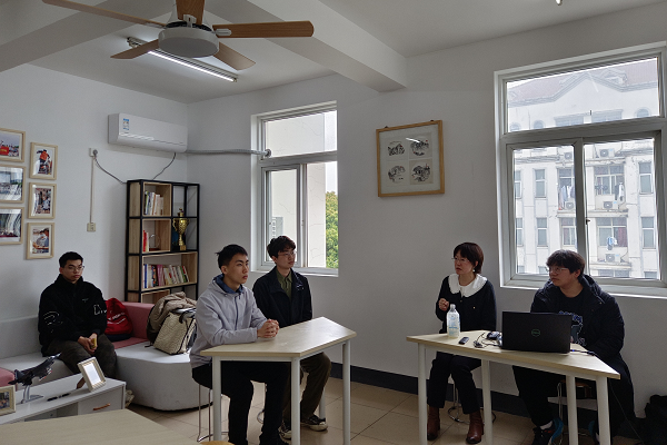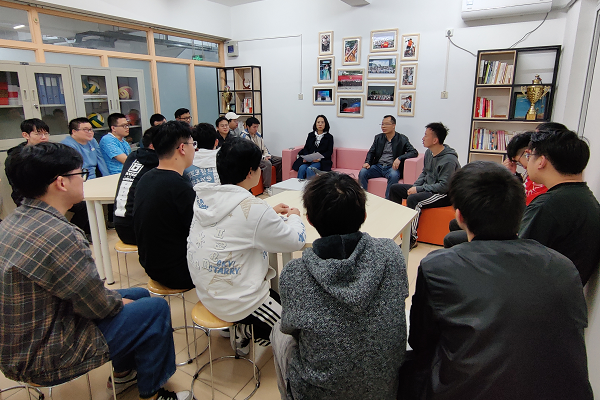 视觉传达设计1902班的同学围坐在讨论桌边分享自己的就业情况。当刘梓涵同学说自己已经顺利拿到知名车企Offer时,班主任徐旸老师十分欣喜,他鼓励到:“视传是一个创造性很强的专业,同学们早些进入职场可以积累经验,保持职场‘敏锐度’。”