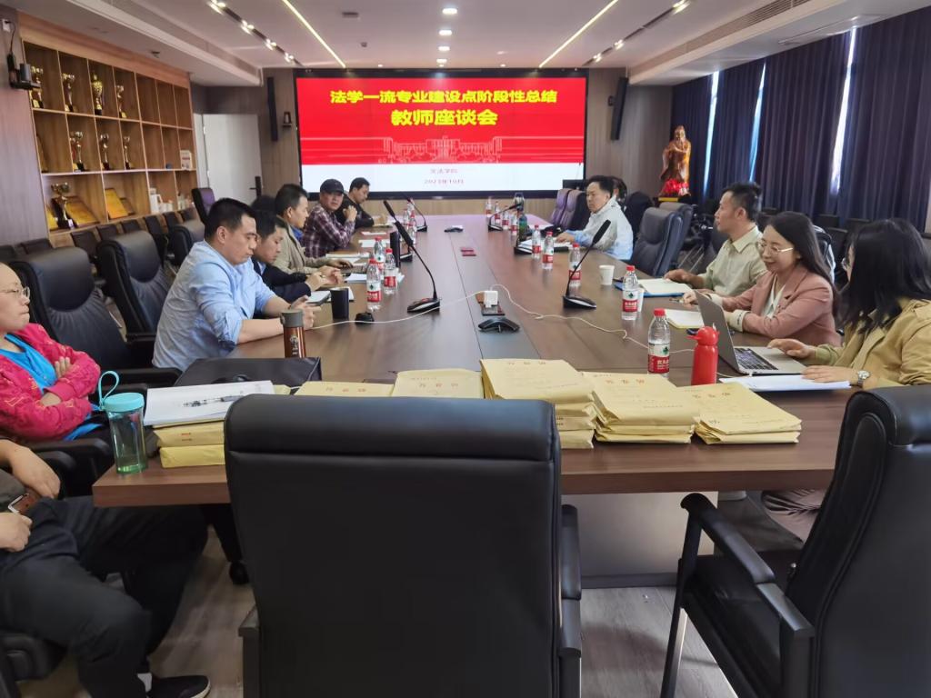 10月22日,省级一流专业(法学)建设点建设情况中期检查报告会在人文楼M613举行。校级督导员任宇华、中南财经政法大学教务部副部长邓松、化学学院王运、本科生院学生事务中心主任申沛等评估专家听取了汇报。太阳集团tyc33455党委书记瞿明勇,副院长王德强、孙站成,法学全体专任老师参加了会议,会议由评估专家组组长任宇华主持。