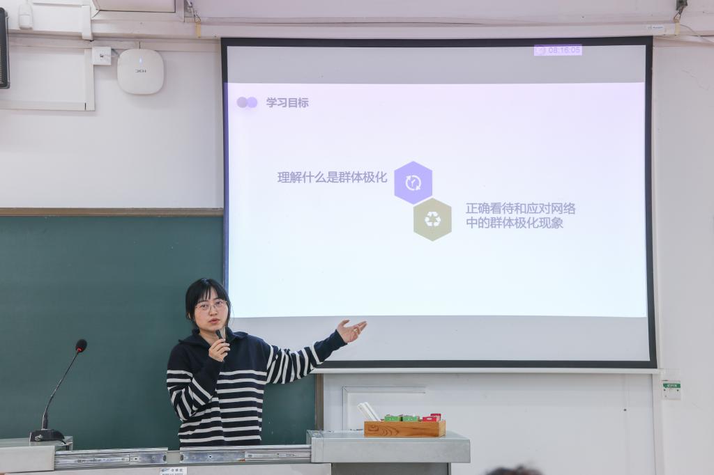 比赛过程中亮点频现。戴秋燕、赵珞琳老师以社会热点事件导入,深入分析事件背后的理论,极大调动了听众兴趣。潘纯老师以问题一以贯之,通过对典型案例的分析及互动实践,让学生切身感受古人造字的创意和智慧。梁骁老师在教学设计方面表现突出,以趣味问题导入,并在授课过程中,截取学生熟知的歌词来对理论进行阐释,将教学化繁为简。陈婧教师把设计梳理成清晰流程,纲举目张。张弛老师则以一个经典案例贯穿始终,生动简洁地将知识点运用其中,将晦涩难懂的法律知识变得通俗易懂,让学生们轻松掌握。雒仁启老师的亲和力感染学生,让学生沉浸到课堂。