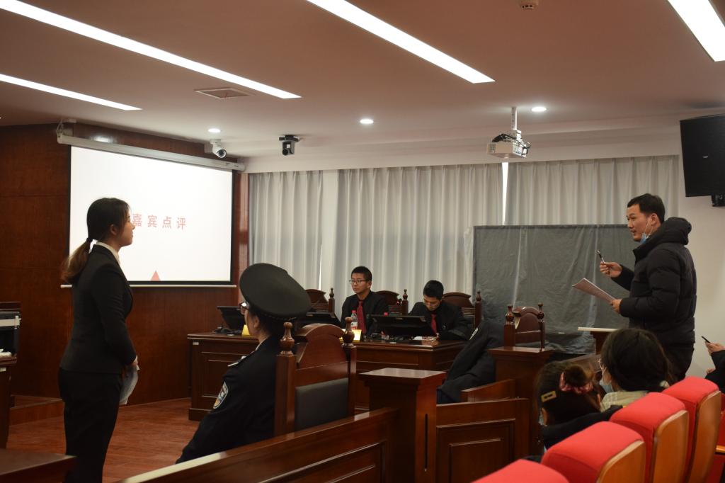 庭审结束后,学院法学系张弛老师作为嘉宾对本次活动进行了点评。他充分肯定了本次活动,并称道“本次活动通过有趣的案件,将法律知识深刻地传达给其他同学,这很有意义。”同时,张弛老师还向现场观众们讲解了真实的法庭场景,并对表演人员的专业表现进行了高度赞誉。最终,太阳集团tyc33455的朱现丽(饰演原告)和食品科学技术学院的邢宇航(饰演审判长)获得“最佳女主演”、“最佳男主演”。当问到邢宇航同学对于本次活动的感想时,他谈到“当穿上法袍的那一刻,他作为非法学专业的人也能在参与中获得体验感和乐趣。”