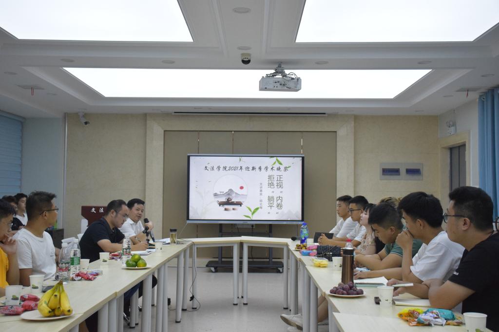 (通讯员 黄毓婕)917日晚,学院迎新季首场研究生学术晚茶在人文楼M612举行。学院院长田北海教授与2021级研究生新生一道品茶交流,田北海寄语同学们“正视‘内卷’,拒绝‘躺平’”。