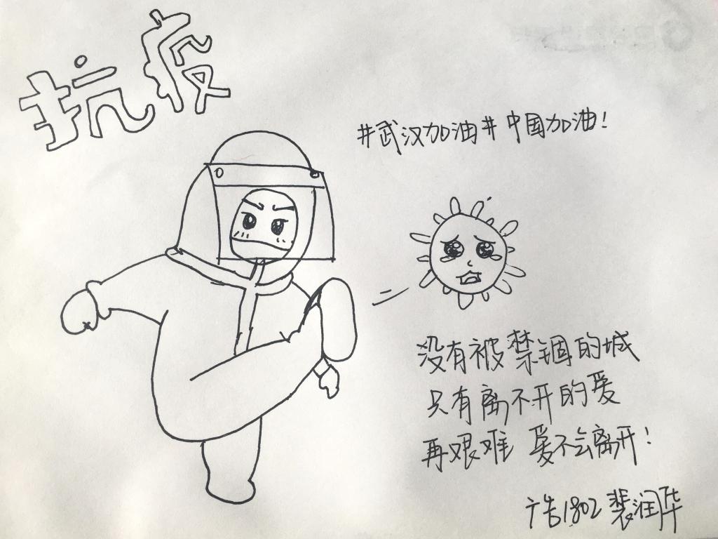 广告1802班的同学们以多种形式认真学习回信中的精神,从诗歌、绘画、歌曲,再到书法和心里话,表达了他们对全国战疫的决心。武倾城同学想对祖国说,中国彰显大国担当,有恩必报,为世界各国树立了榜样,祖国的一切都值得自己骄傲和自豪。