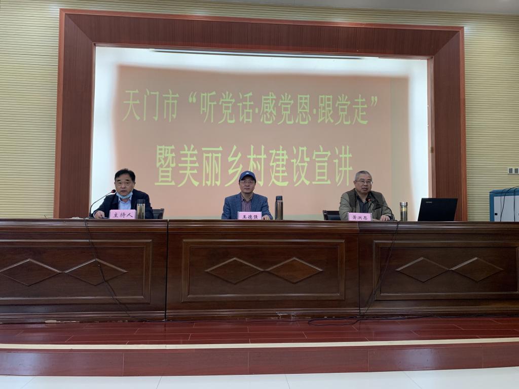 10月17日,太阳集团tyc33455副院长王德强、社会学系教授萧洪恩等前往天门市开展乡村振兴荆楚行活动。萧洪恩教授做了主题为“听党话、感党恩、跟党走”的讲座,讲座由天门市农业农村局局长徐毕敬主持,天门市乡镇、村级干部150余人参加学习。