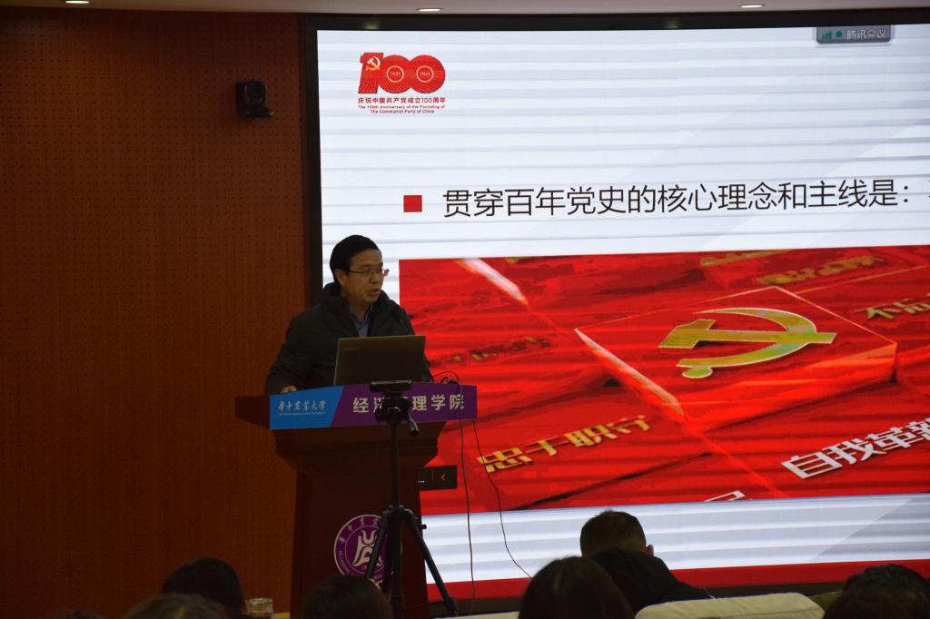 最后,程华东结合教育工作谈到,师生党员应做到“以文弘业、以文培元、以文立心、以文铸魂”,全面贯彻习近平新时代中国特色社会主义思想,大力弘扬伟大建党精神,勿忘昨天的苦难辉煌,无愧今天的使命担当,不负明天的伟大梦想。
