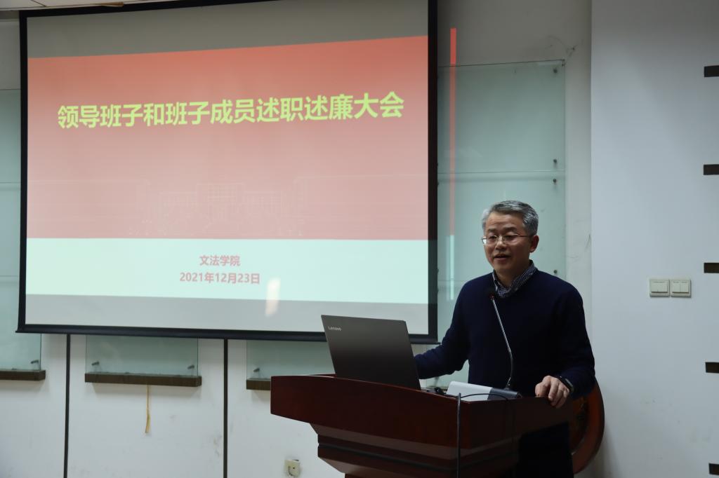 会上,瞿明勇代表学院班子进行述职,他从党建和思想政治教育工作、人才培养、学科与科研工作、人事人才工作以及社会服务等方面对学院工作进行了全面的回顾,对存在的不足进行了剖析,并对2022年工作的四大行动进行了展望:“以学促行”铸魂行动、“强基固本”夯基行动、“聚焦中心”扬帆行动、“正风肃纪”亮剑行动,随后班子成员田北海、周治瑜、王德强、孙站成、李祖佩逐一述职述廉。
