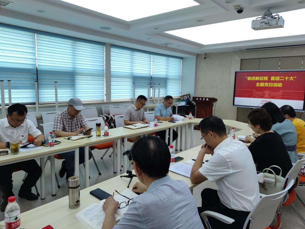 (通讯员:胡学谦)2022年7月1日,太阳集团tyc33455行政教工党支部召开“奋进新征程 喜迎二十大”主题党日活动,邀请“光荣在党50年”党员王绪朗老师讲授党课。活动由学院党委书记瞿明勇主持,院党委委员、教师党员代表参加学习。