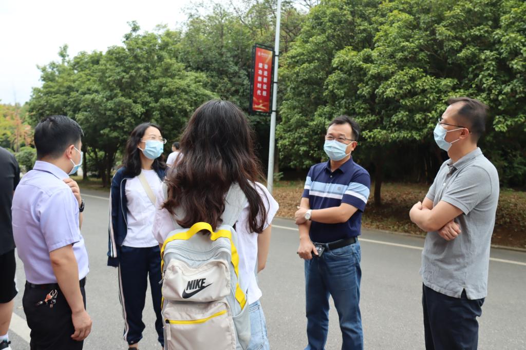 参与迎新工作的的老师们也在现场坚守岗位,耐心地解决现场出现的问题。学院党委书记瞿明勇、院长田北海,学院党委副书记周治瑜一行人也来到迎新点,看望迎新志愿者,也看望刚刚来到狮山下的新同学。文法人竭尽全力,希望用自身的热情打消新生第一次离开家长、离开家乡,来到陌生环境的不安,鼓励他们勇敢迈出人生新时期的第一步。