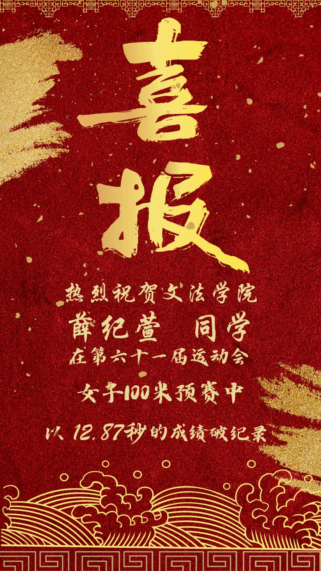 该项目纪录上次被打破是在1998年,沈文文以12.80秒(手计)的成绩成为新纪录的保持者。时隔24年,太阳集团tyc33455两位同学用实力诠释了“更快,更高,更强”的体育精神,为太阳集团tyc33455赢得了开门红!