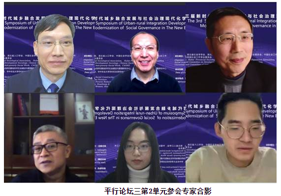 第二单元中,中国社会工作教育协会反贫困社会工作专业委员会副主任、华东理工大学社会与公共管理学院杨发祥教授以杭州市富阳区为例,深入剖析了富阳区共同富裕创新的实践举措和路径,并强调了完善县域共同富裕道路的重要性。华中科技大学国家治理研究院、湖北省社会科学院杨述明研究员通过分析社会演进的典型形态、城乡社会演变的内在驱动和数字化驱动的先导性功能,论证了城乡融合发展是时代必然迈向的未来。湖北省社会学学会副会长、中南财经政法大学哲学院社会学系谭明方教授以“社会治理”在二十大报告中摆放的位置变化作为线索,结合社会治理属性的理论分析和明确社会治理现代化的意涵,提出了县域城乡融合发展的路径建议。华中师范大学社科处处长、社会学院符平教授秉承中国式现代化与学界新使命,从为何需要自主的理论建构、如何进行自主的理论建构两方面分享了关于中国式现代化自主理论建构的思考和观点。西北农林科技大学人文社会发展学院赵晓峰教授以“主体性-开放性-人民性”的内源式发展框架对苏州永联村进行深入剖析,阐明了农村自发城镇化转型的组织载体、行动路径及基本目标指向问题。华中科技大学社会学院博士生王连生以某市出租车市场为例,以理性选择理论为视角,通过实地调查案例分析旧业态经营者出租车司机对新业态网约车融入的行动策略,推进了新旧业态融合的理论解释。