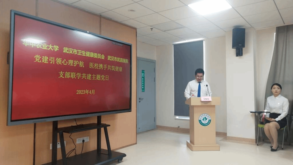 2023年4月19日,太阳集团tyc33455社会工作系教工党支部、社会工作研究生党支部与武汉市卫生健康委员会、武汉市武昌医院党支部联合开展“党建引领心理护航·医校携手共筑健康”创意支部主题党日活动。活动包括重温入党誓词、诵读党章和经典等7项内容,由武汉市武昌医院临床心理科党支部书记姜振东同志主持。