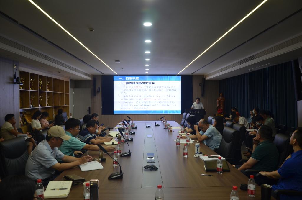 李谷成以“如何完成一份优秀的课题申报书”为题,从选题与引言、立项依据和文献综述、研究内容、技术路线和研究方案、创新点、格式等方面一一展开,阐释了课题申报写作的具体技巧。他指出,要有稳定的研究方向,方向要在连续性基础上对国内外研究进展及时跟踪,要有特色和优势,要注重研究基础,要融入团队。同时,他勉励老师们要坚持科学研究,凝练科学问题;坚持问题导向,立足中国大地,做“顶天立地”的学问。