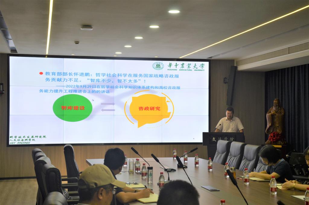 上午,会议邀请了中国地质大学(武汉)科学技术发展院副院长郭海湘,太阳成集团tyc33455cc科学技术发展研究院人文社科处副处长王鹏、公共管理学院院长柯新利和经济管理学院院长李谷成进行了4场专题辅导报告,会议由学院院长田北海主持。