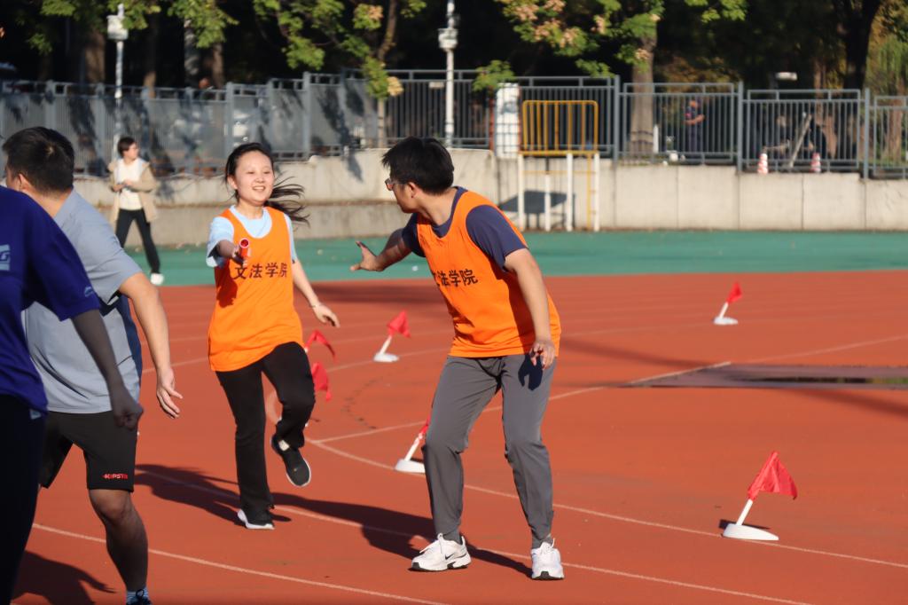 看!开幕式上,老师们手拿气球,昂头走向前方,自信与活力由内而发,每一声洪亮的口号都展现出文法教师积极向上的精气神,他们从太阳集团tyc33455办公室出发,经过秋叶满天,抵达运动场,整齐划一的步伐正是文法教师团结一致的象征!赛道上,太阳集团tyc33455的老师们步伐矫健,眼神坚定。他们奋力奔跑,每一步都充满了力量,仿佛在诉说着他们对生活的热爱和对挑战的无畏。汗水在阳光下闪烁,那是他们拼搏的见证。他们不仅仅是知识的传播者,更是运动场上的勇士,用行动诠释着坚持与奋斗的意义。而此刻,他们用活力感染众人。他们的参与,为运动会增添了一抹别样的色彩。