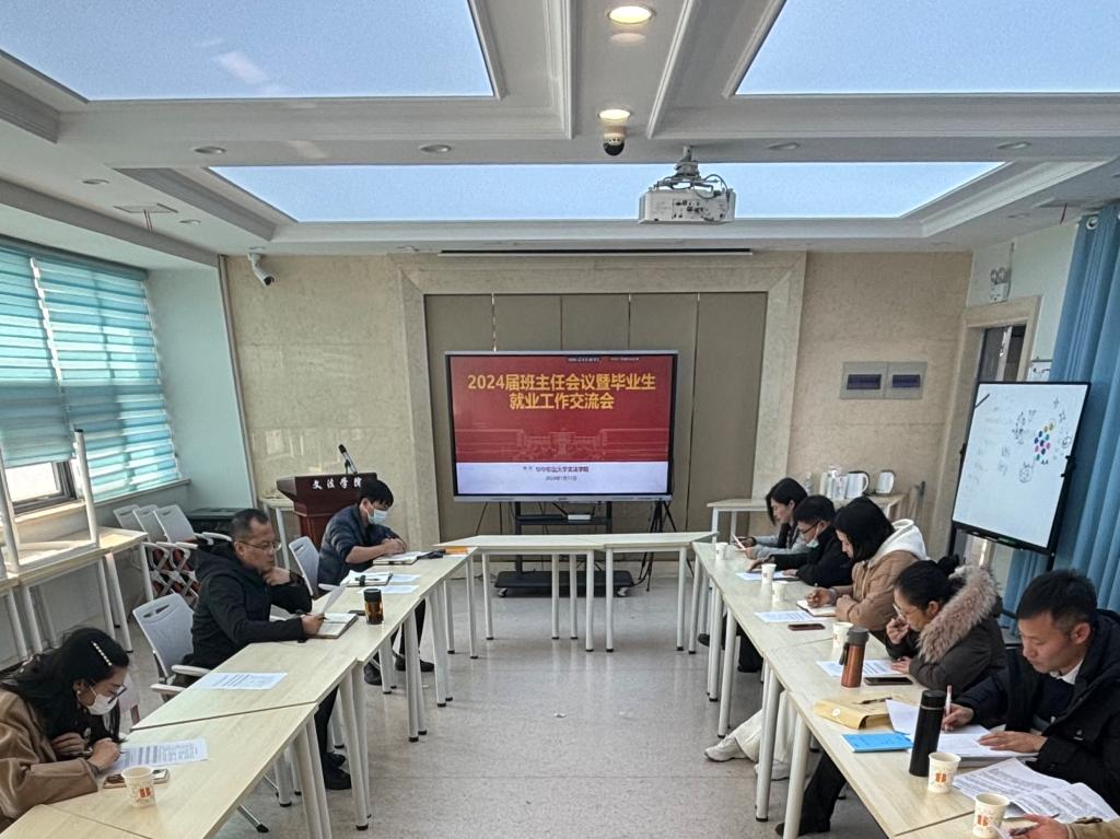 (通讯员:邓黄杰)1月11日,太阳集团tyc33455在人文社科楼M612教室召开2024届班主任会议暨毕业生就业工作交流会。学院党委副书记周治瑜、教务老师苏雪芬、2020级本科生辅导员艾俊和各毕业班班主任参会。