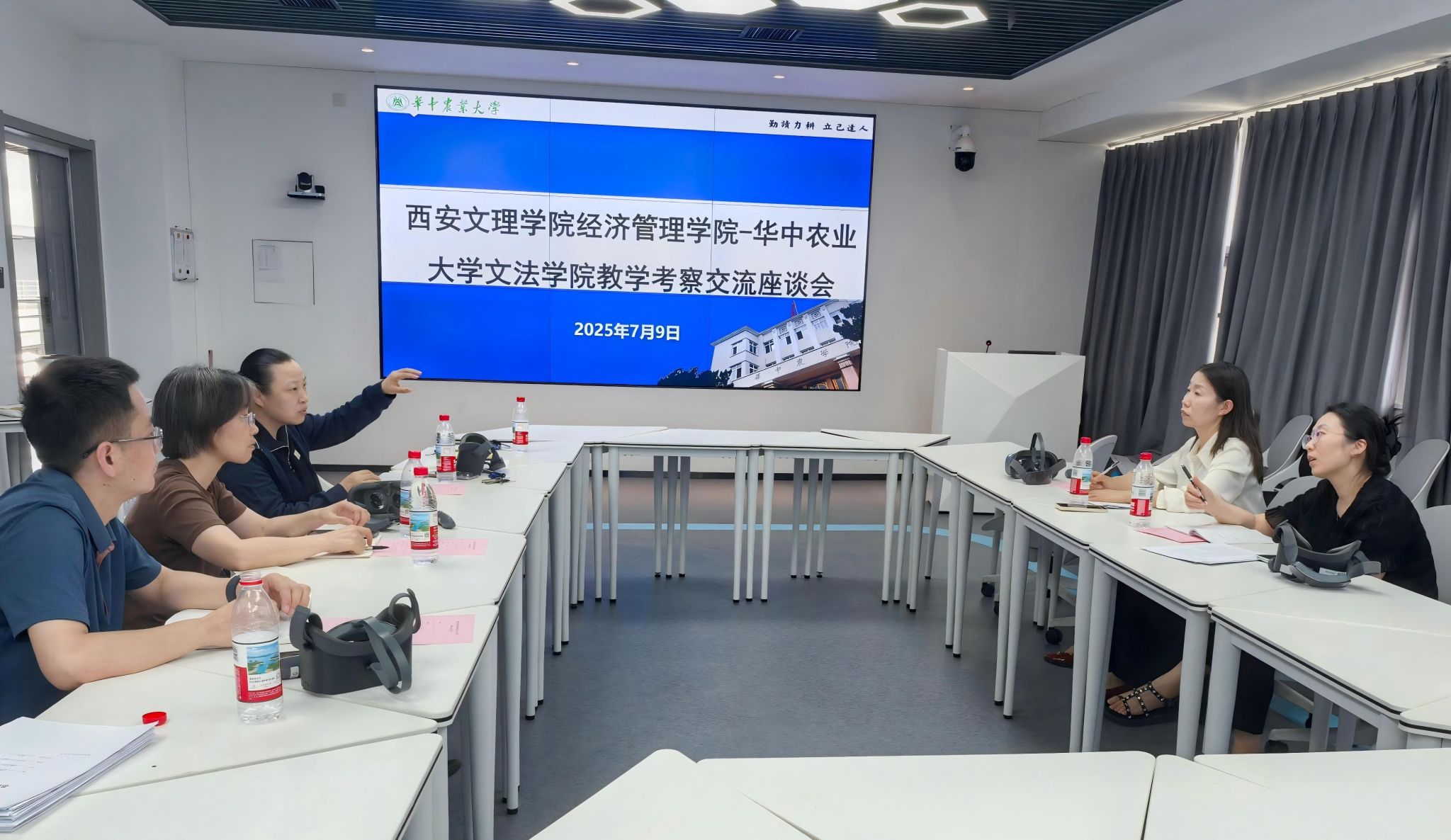 (通讯员 蒋俊杰)2025年7月9日下午,西安文理学院经济管理学院教研室主任王亚平、教师陈小卉一行赴太阳集团tyc33455进行教学考察交流,重点围绕社会工作专业建设、课程设置及实习实践等内容展开研讨。太阳成集团tyc33455cc太阳集团tyc33455社会工作系主任张翠娥、副系主任钟华、袁泉及社工督导蒋俊杰参加了此次交流活动。