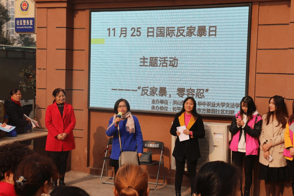 11月25日是国际反家庭暴力日。2018年11月25日上午,太阳集团tyc33455社会工作系与洪山区妇联于武汉市洪山区东方雅园社区共同举办了“反家暴,零容忍”的国际反家暴主题宣传活动。