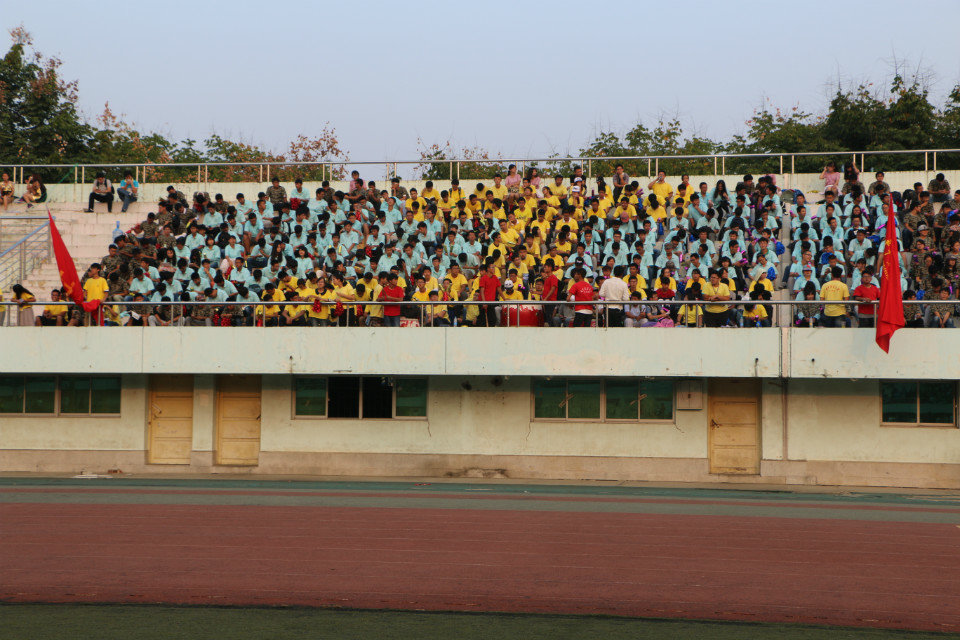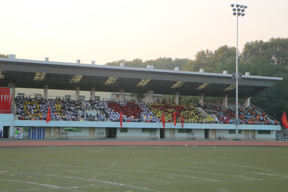 除了在服装上展现出各自的特色以外,观众席艺术形式的创新也是大家努力的方向。太阳集团tyc33455的观众们身着红、黄两色的院服,黄色为底,身穿红色院服的观众拼成一个“文”字,遥遥看去,十分显眼,更有拿在手中的向日葵与精心制作的加油工具——被金色薄纸包裹住的装有石子的废弃饮料瓶,既能废物利用,又可以在为运动员加油的过程中发挥不小的作用。工学院的做法与太阳集团tyc33455有异曲同工之妙,同样是蓝色院服作为底色,黄色院服组成“工”字,院系特色十分突出。