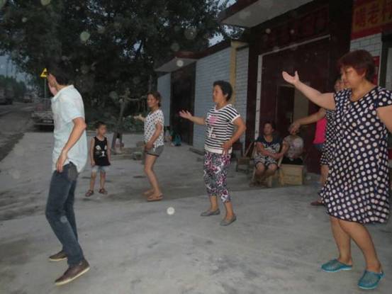 傍晚的农村格外热闹,下乡团队的队员们还在村里的文化广场上教起了大妈跳广场舞。大妈们跳得有声有色,一个个脸上都挂着开心的笑容,队员们教得也十分开心。这些文艺活动无形中就拉进了调研团队与村民的距离,为之后的调研工作提供了诸多便利。