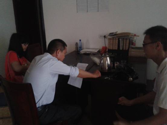 示范中心的魏主任在看我们的访谈提纲
