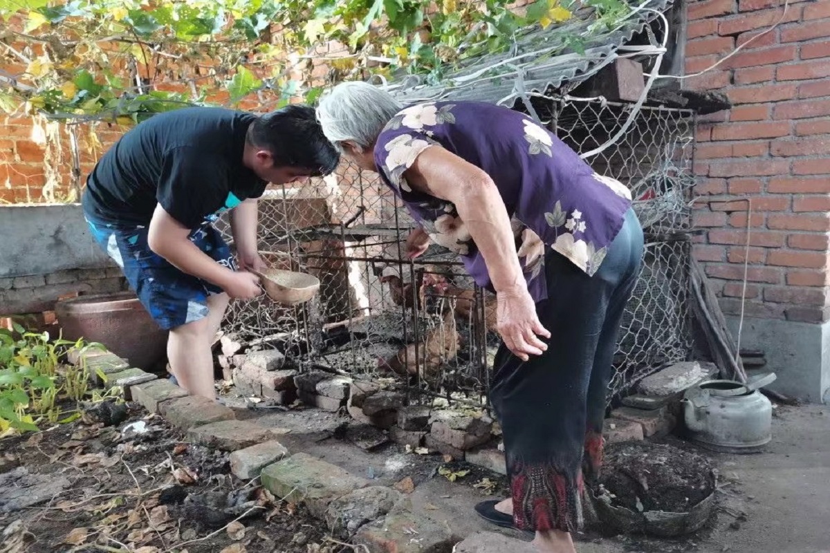 老人家里有一小片菜田,还养着一些农畜,平日就以料理农活赚取微薄的生活费。在实践中,潘嘉奥主要负责帮助老人做简单的农活如灌溉菜地、饲养农畜等,以及为两个孩子进行功课辅导。天气恶劣时就留在老人家里帮助老人做饭。由于家庭经济条件限制,马氏老人家里还在使用老旧的土灶台,潘嘉奥每隔两天就会随老人前往后山捡拾薪柴。随着与帮扶对象关系熟络,潘嘉奥与马老家里人的交流也逐渐变多。辅导之余时常给孩子们讲述自己的大学生活、理想前程等。孩子们也从最初的生分和畏惧逐渐变为热情和崇拜,往往会询问一些大学的事情,如大学生的课程安排、日常生活等。潘嘉奥对于这些问题一一作答,并对他们加以鼓励。孩子们因此对未来充满期待,表示希望能像潘嘉奥一样走出乡村,看看外面的世界。
