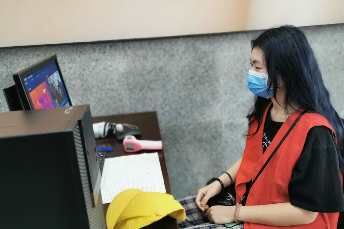 出示健康码、行李安检、测温,这是目前进出城铁必经的三道关卡,这次的志愿者由余姚市应急管理局统一调度,派遣进入余姚火车站进行志愿工作,骆嘉负责的就是测温部分的工作。测温点设置在出入站口,电子测温仪、人工测温枪等设备一应俱全,为的就是保障每一位乘客体温的正常,完成万无一失的防控要求。每位乘客出入站口都需经过两台电子测温仪的红外线照射,骆嘉的每日工作就是在系统中就能监测到他们的实时体温,如有发现不正常的温度,系统发出警报,她便将对应的异常体温者叫住,对其进行人工测温和观察。
