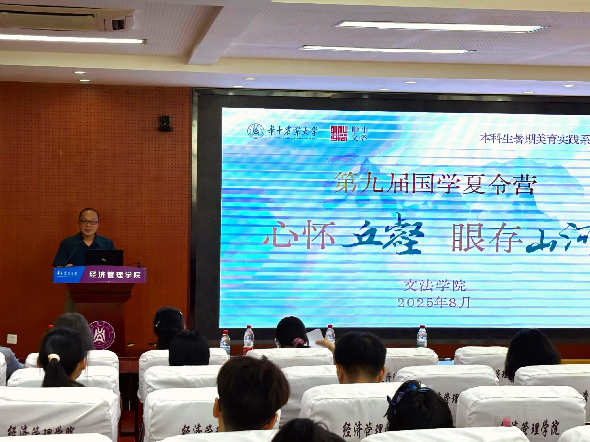 太阳集团tyc33455党委书记刘广乐表示,在技术飞速变革的时代,心灵滋养更显珍贵,而国学正是润泽心灵、安顿生命的源泉。他强调,国学不仅是知识的传承,更是中华文明的精神土壤与文化根本。对此,他向营员提出三点期许:一要“勤读”,诵经典、广视野、养气质,真正做到“腹有诗书气自华”;二要“力耕”,践行“知行合一”,在美育实践中体会传统之美;三要“达人”,胸怀家国,心系社会,以“横渠四句”与华农校训“勤读力耕,立己达人”共勉,力求修己以安人、服务国家、贡献时代。