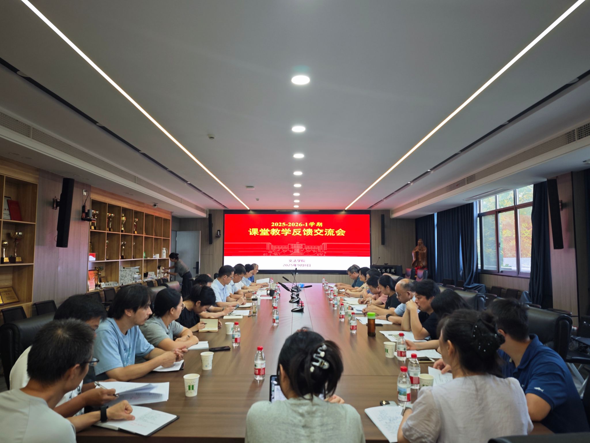 反馈会上,参会教师围绕听课情况,从课堂教学质量、学生课堂表现、师生互动效果以及教学硬件保障等方面展开交流。听课教师认为,授课教师备课充分,课程内容结构清晰、重难点突出;课堂互动方面,教师擅于以问题启发学生,课堂氛围积极热烈。同时,与会教师还就课程设计、课件优化和课堂管理等方面提出建设性意见。授课教师认真听取建议,并逐一回应,表示将在后续教学中积极调整、不断完善。